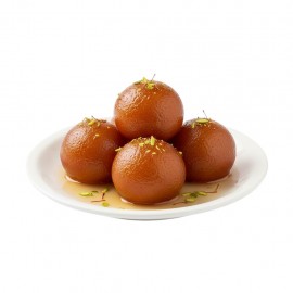 Gulab Jamun, syrup-soaked fried balls. Ingredients: Milk, Sugar, Ghee, Cardamom...
